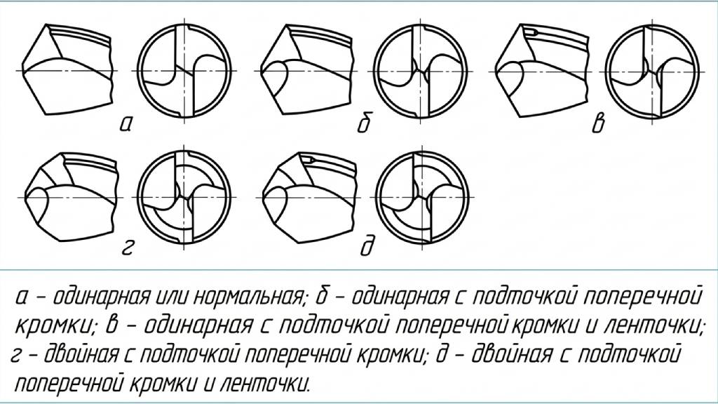 Существует пять разновидностей заточки сверлильных приспособлений по металлу: