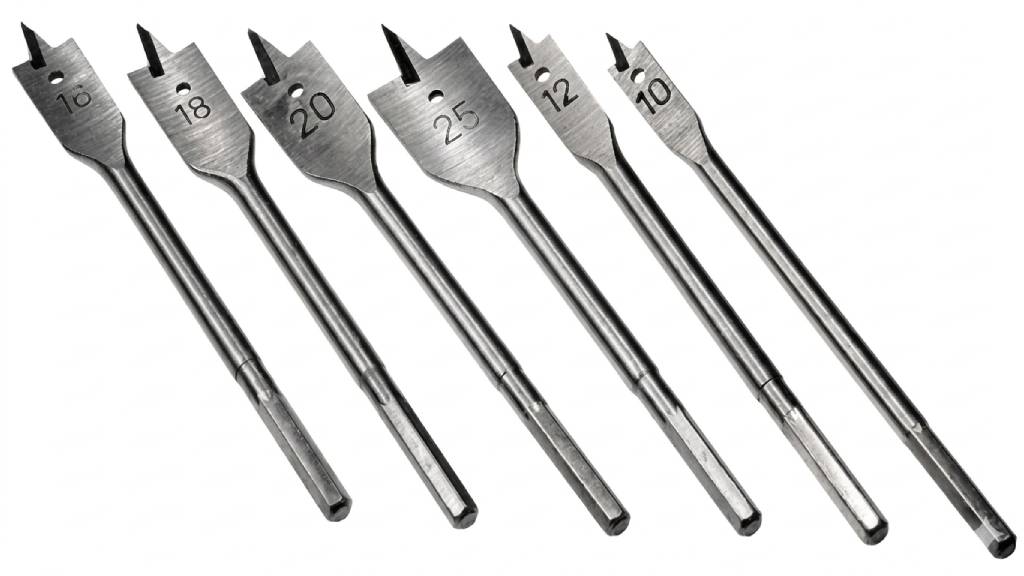 Отличаются оригинальным внешним видом. Их хвостовая часть выполнена в виде шестигранника, который дает возможность делать достаточно глубокие, а также идеально ровные отверстия. Такой инструмент применяется в ситуациях, когда требуется выполнение отверстий без перекоса или проходов с сечением большого диаметра. Кроме того, что перовые сверла очень точные, они еще отличаются невысокой ценой. Благодаря этим преимуществам изделия широко применяются как на производствах, так и в бытовых условиях.