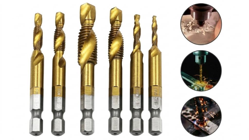 Изделия с титановым напылением способны выдерживать высокие нагрузки и применяются для изготовления отверстий в изделиях из цветных металлов, легированной стали, а также металлокерамики или плексигласа (оргстекло).