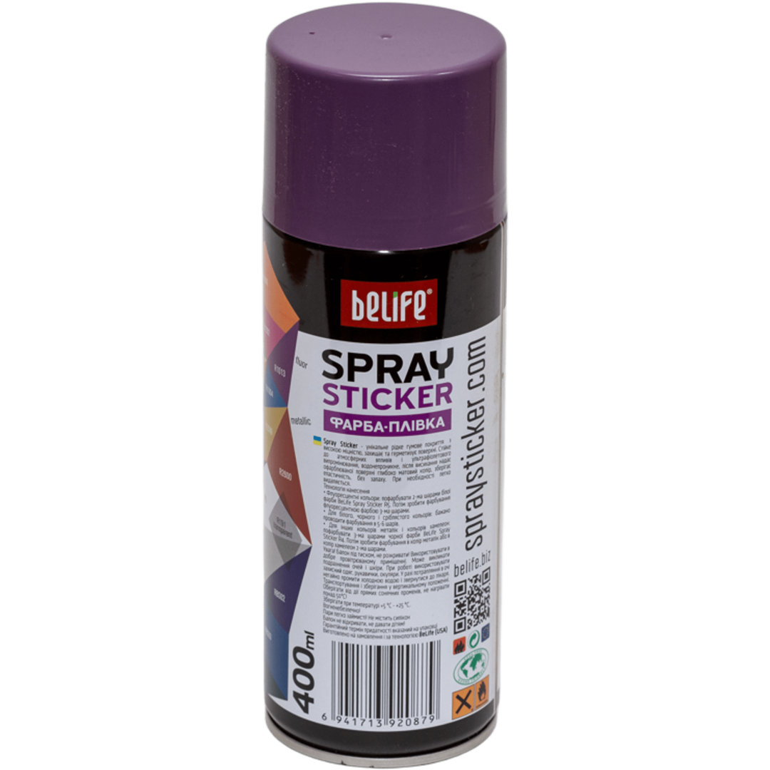 BeLife Spraysticker - продукт не содержит агрессивных растворителей, является защитной пленкой (жидкая резина). Широко используется для тюнинга автомобиля, защиты алюминиевых, стальных дисков и колпаков, наружных зеркал заднего вида, радиаторных решеток и других деталей любого колесного транспорта, подходит как для внутренних, так и для наружных работ. Имеет эффект матового хамелеона, который необходимо наносить на базовый черный цвет, покрывать лаком. Не выгорает и не трескается. Хорошая укрывистость, удобная в применении, не оставляет подтеков. Защищает от сколов, царапин, грязи, влаги. Финишное покрытие обладает глубоко-матовым блеском, высокой прочностью и отличной степенью защиты от агрессивной внешней среды. Срок службы покрытия до 2 лет.