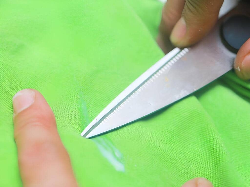 - Акуратно видаліть виступаючу частину забруднення за допомогою гострого ножа. Відскоблювати потрібно вкрай акуратно, щоб не пошкодити тканину.